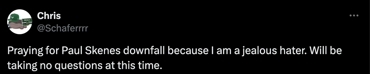 I’m in a group chat that is solely devoted to hating on Paul Skenes. That’s the level of hate, we’ve gotten to. If you think that’s sad, you’re right, but I just need to find something wrong with this guy.